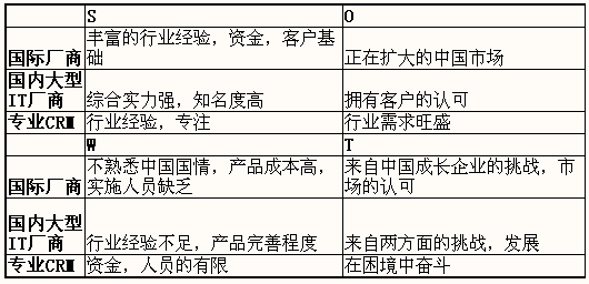 國內(nèi)的大型軟件公司,ERP+CRM的優(yōu)勢。為了擴(kuò)展其產(chǎn)品線的需要,也在近幾年進(jìn)入了CRM領(lǐng)域。用友公司的金種子計劃,金碟公司的東方明珠計劃逐漸加強(qiáng)投入,神州數(shù)碼與臺灣軟件公司的合作恐怕也不會不對這樣一塊蛋糕有所想得。