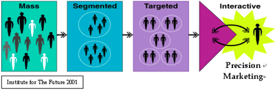 首先,互聯(lián)網(wǎng)的出現(xiàn)改變了營銷的概念,為大規(guī)模定制創(chuàng)造了空前的機(jī)遇。隨著富裕而又有辨別能力的中產(chǎn)階級(jí)的逐漸壯大,預(yù)先營銷的期望以及針對(duì)個(gè)人的解決方案日益成為一種標(biāo)準(zhǔn)。從記住他們的行為&偏好并為他們發(fā)送相關(guān)產(chǎn)品信息 (例如Amazon.com) …到幫助他們得到自己理想中的產(chǎn)品 (例如Dell.com,) ,CRM觀念的關(guān)鍵之處就在于為客戶提供符合他們需求的產(chǎn)品/服務(wù)而不是向他們推銷你的東西;ヂ(lián)網(wǎng)使你能夠與客戶建立學(xué)習(xí)關(guān)系,從銷售轉(zhuǎn)移到解決問題;ヂ(lián)網(wǎng)上的CRM已經(jīng)上升到了另一個(gè)高度。