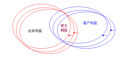 如何才能改善客戶(hù)得到的價(jià)值呢?如何才能在企業(yè)利益與客戶(hù)利益之間找到一個(gè)最佳平衡點(diǎn)?方法之一是把自己想要做的事情勾勒一下。我們想要找到的是雙贏區(qū)域。在比較復(fù)雜的情況下,這個(gè)雙贏區(qū)域可能還會(huì)移動(dòng)。設(shè)計(jì)一個(gè)應(yīng)用軟件并配置一套人員流程來(lái)跟蹤一個(gè)會(huì)移動(dòng)的雙贏區(qū)域顯然是不大可能的。這也正是CRM為何如此難以把握的原因之一。