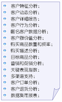 智能CRM系統(tǒng)提供了基于客戶和商品的分析,為零售商的決策分析提供了有效依據(jù)。例如CRM可以提示:哪些客戶在流失?哪些客戶群的購買力在下降?哪些針對特定客戶群的購物籃沒有達(dá)到設(shè)計(jì)的指標(biāo)等等。商場可以據(jù)此采取彌補(bǔ)性的營銷措施。