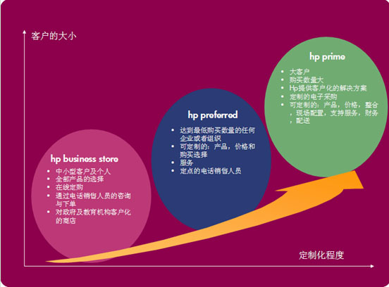 從圖中我們可以看出,對(duì)于不同類型的客戶,Business Store, HP Preferred, Hp Prime供其選擇。其中HP