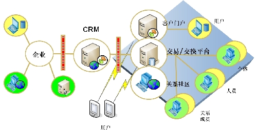 企業(yè)的社區(qū)營(yíng)銷(xiāo)架構(gòu)不僅僅是在構(gòu)建一個(gè)網(wǎng)絡(luò)社區(qū),而是圍繞企業(yè)的應(yīng)用充分結(jié)合起來(lái),包括企業(yè)的CRM系統(tǒng)、消費(fèi)者門(mén)戶、社區(qū)以及交易交換平臺(tái)等。如圖所示: