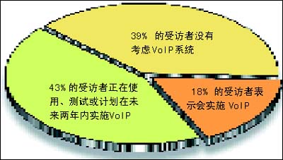 該調查收集了全球254名高級管理人員對未來企業(yè)網絡的意見和看法。其中,43%的受訪者表示,他們正在使用、測試或計劃在未來兩年內實施VoIP;另外 18% 的受訪者表示,從長遠的角度來講,他們會實施 VoIP。市場預測也顯示相同的樂觀前景。研究機構Gartner Dataquest預期到2008年,公用電話交換網 (PSTN) 的零售語音收入將輕微下跌,而VoIP的零售收入則上升 38.6%。