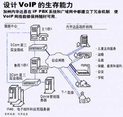 由于設(shè)計得當(dāng),加利福尼亞州內(nèi)華達(dá)縣的VoIP網(wǎng)絡(luò)在長達(dá)兩年的運行期間只有過5分鐘的停機。該縣桌面服務(wù)經(jīng)理Bill Miller指出,這部分停機時間還是按計劃進(jìn)行系統(tǒng)維護時造成的。