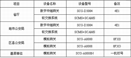 在區(qū)縣局,可采用數(shù)字E1中繼網(wǎng)關(guān)SCG-D3004或采用模擬語音網(wǎng)關(guān)(SCG-A8000);當(dāng)話務(wù)量不是很高時(shí),可采用模擬語音網(wǎng)關(guān)與用戶原有的 PBX對(duì)接,采用FXS+FOX的方式,分別連接PBX的模擬中繼線和用戶線,實(shí)現(xiàn)PBX的VOIP接入。