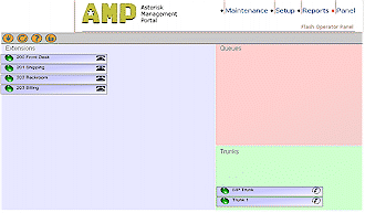 面板標(biāo)簽(圖8)是一個由Flash建立的操作面板,它包含有不同的extensions、隊(duì)列和中斷,并可允許你來查看誰在使用這個系統(tǒng),還可轉(zhuǎn)移呼叫、掛斷線路并可通過面板來建立電話會議。