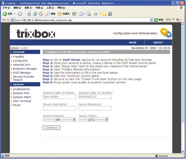 圖2 Trixbox的主頁(yè)面