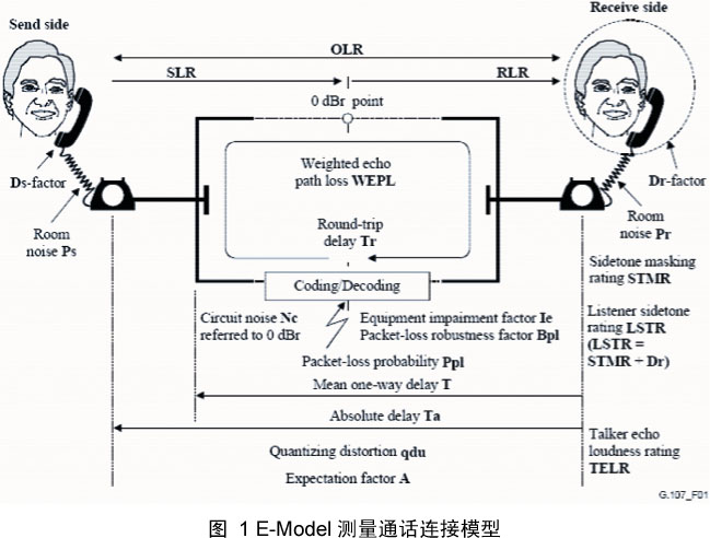 - E-Model:本文將重點(diǎn)介紹的測(cè)量方法,該方法定義在ITU-T G.107當(dāng)中。