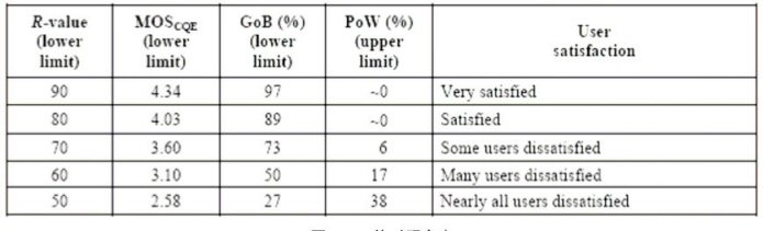 G.113 Appendix I,找到合適的Ie和Bpl值);第五步:根據(jù)終端類(lèi)型,確定A值;第六步:計(jì)算R值,根據(jù)R和MOS的對(duì)照關(guān)系表,得到MOS值。