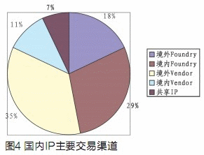 而境外的IP Vendor因為能夠提供具備質量優(yōu)勢和技術優(yōu)勢的IP核,也成為主要的IP交易渠道之一。具體的數(shù)據(jù)參見圖4。