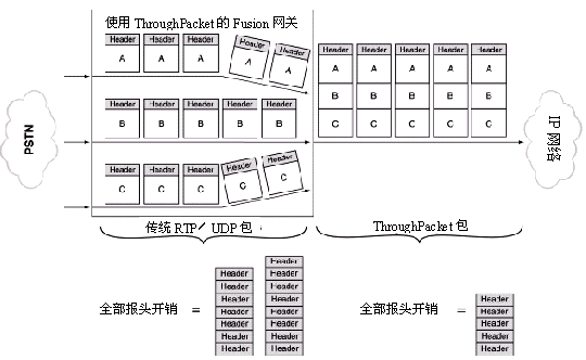 圖2 Clarent ThroughPacket包和普通RTP/UDP包的比較