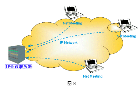如圖8所示,IP會(huì)議包含兩個(gè)基本組件:IP會(huì)議服務(wù)器(IP Conference Server)和IP會(huì)議客戶端(如Netmeeting等)。