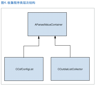 AparsedValueContainer類沒有數(shù)據(jù)和方法。它僅用于配合收集程序類的運(yùn)行。(見圖3。)抽象收集程序類純虛擬功能CollectValues()的第二個影響因素是容器,當(dāng)在具體收集程序類實施中定義了容器時,必須使用通用的基礎(chǔ)類。所以在真正使用容器之前,必須在每個具體的收集程序類中進(jìn)行向下類型轉(zhuǎn)換。