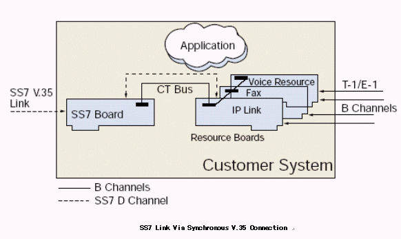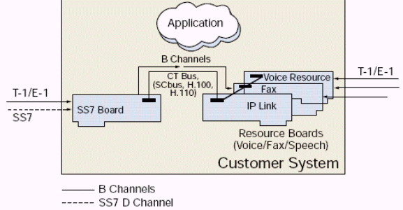• 其它 T-1/E-1 通道被語音板卡管理,可通過CTbus路由到七號信令板卡