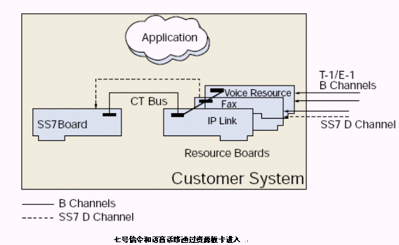 • B 通道直接通過CTbus通過七號信令板卡路由到語音資源板卡