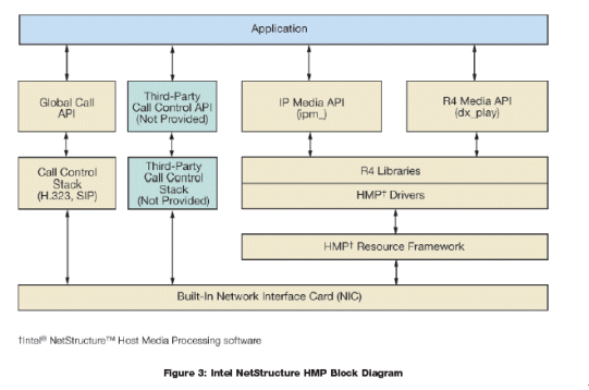 HMP軟件結(jié)構(gòu)與Dialogic Dialogic 板卡DM3結(jié)構(gòu)同樣的方式, 但不需要專門(mén)的硬件。