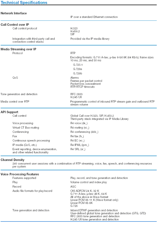 H.323 with H.450.2補(bǔ)充規(guī)定,SIP協(xié)議,Global call 支持。