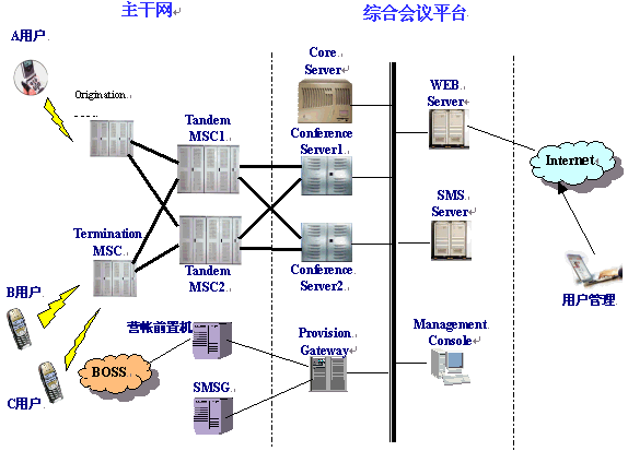 概述 。。今年來(lái),隨著電話會(huì)議技術(shù)的不斷成熟,基于計(jì)算機(jī)平臺(tái)的會(huì)議型業(yè)務(wù)應(yīng)用越來(lái)越活躍,其中電話會(huì)議系統(tǒng)、QQ聊天系統(tǒng)以及BGM便是主要熱門應(yīng)用。 。。交互式電話會(huì)議系統(tǒng)是一個(gè)真正由用戶自己管理的智能型交互式電話會(huì)議系統(tǒng),是目前國(guó)際上流行的一種召開(kāi)會(huì)議的新形式?蛻衾盟梢噪S時(shí)隨地召開(kāi)本市、國(guó)內(nèi)或國(guó)際的電話會(huì)議,人們無(wú)論身在何處,只需撥打一個(gè)事先約定的電話會(huì)議號(hào)碼和密碼,即可參加會(huì)議,并且能自由組會(huì),同時(shí)發(fā)言,自由交談?梢酝瑫r(shí)招開(kāi)數(shù)十方,適用于商務(wù)研討、緊急討論會(huì)、信息匯總會(huì)、親友聚會(huì)等各種各樣的會(huì)議。