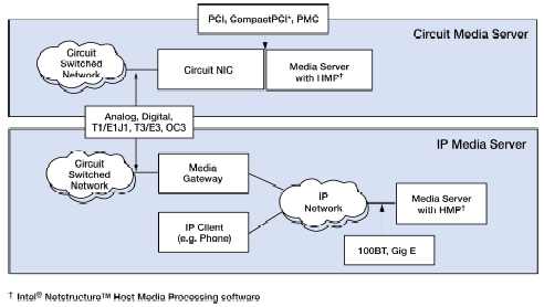 HMP軟件使用了內(nèi)置的網(wǎng)卡(NIC)來提供IP連接。它支持工業(yè)標(biāo)準(zhǔn)的H.323協(xié)議來進(jìn)行呼叫控制,通過G.711格式來支持IP上的RTP/RTSP媒體流。為了有助于網(wǎng)絡(luò)上的媒體流質(zhì)量,HMP軟件支持10、20和30毫秒大小的幀,以及諸如QoS門限告警之類的其它特性。