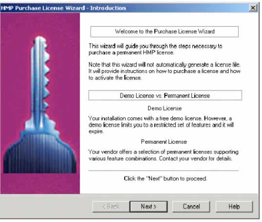 2. 在HMP許可證管理器窗口中(圖16),點(diǎn) How to Purchase License...按鈕。HMP購買許可證導(dǎo)航將出現(xiàn)(圖17)。該向?qū)⒁徊讲街笇?dǎo)你購買一個(gè)永久的HMP許可證。