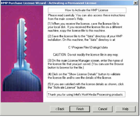 當(dāng)你購買并激活一個(gè)永久的HMP許可證后,啟動(dòng)Dialogic® Dialogic®配置管理器 (DCM),具體方法為: 開始 > 程序 > Dialogic NetStructure HMP 1.0 > Dialogic Dialogic配置管理器- DCM.。DCM將檢測(cè)HMP并自動(dòng)找到許可證配置設(shè)置。DCM 也允許你啟動(dòng)Dialogic Dialogic 系統(tǒng)。更多的細(xì)節(jié)可參見第五章 "配置主機(jī)媒體處理軟件".