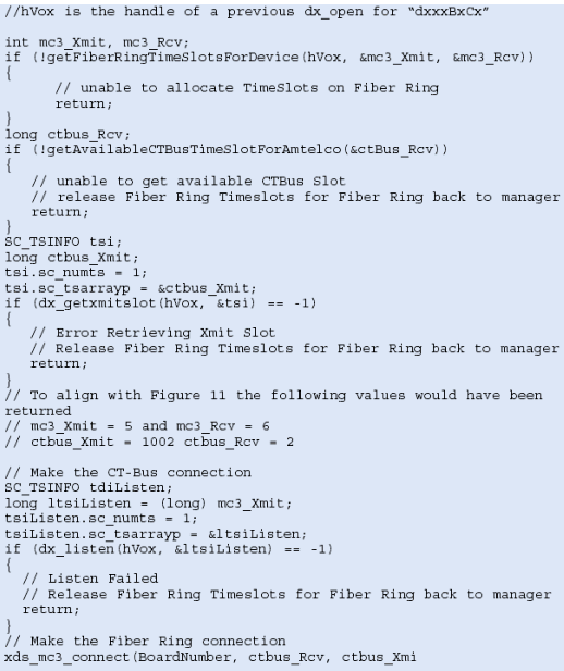 圖12是服務(wù)器1上建立連接所需的代碼示例,注意:xds_mc3_listen 和 xds_h100_listen函數(shù)不能以相同的方式看到連接,使用這些函數(shù)以前請參考API手冊確信這些函數(shù)的功能。